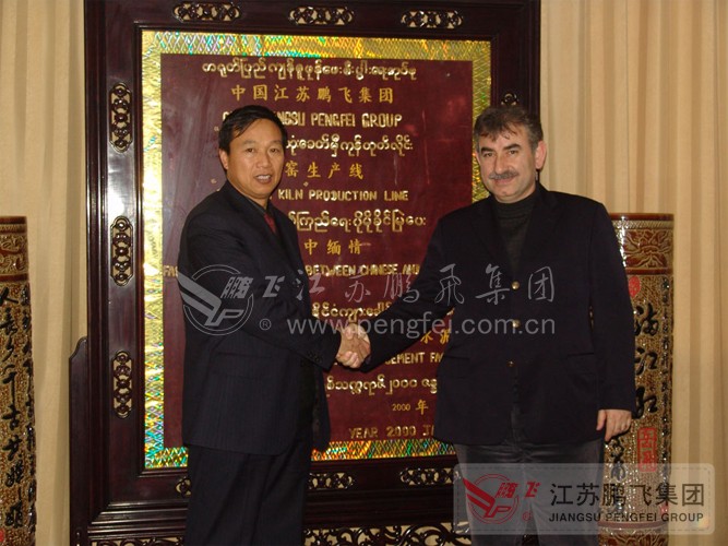 董事長王家安與土耳其客人洽談日產(chǎn)1500噸生產(chǎn)線時(shí)互致祝福