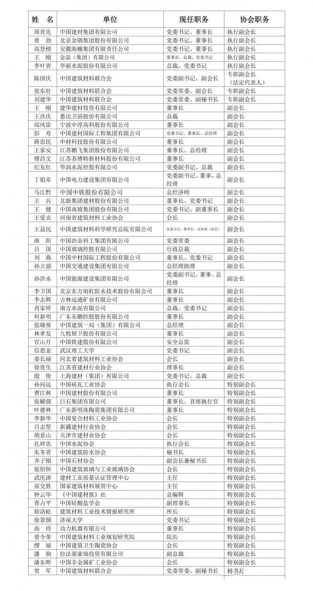 國務院國資委協(xié)會黨建局局長肖宗輝致辭;中國建筑材料聯(lián)合會五屆理事會秘書長孫向遠作題為《不忘初心 繼往開來 努力將行業(yè)協(xié)會建設成為推進行業(yè)發(fā)展的重要組織力量》的工作報告;大會審議通過了關于修訂《中國建筑材料聯(lián)合會章程》、首次設立監(jiān)事會等七項議案,選舉產生了新一屆理事會、監(jiān)事會;第五屆理事會會長喬龍德,中國建筑材料聯(lián)合會黨委書記、理事會換屆領導小組組長閻曉峰分別講話。