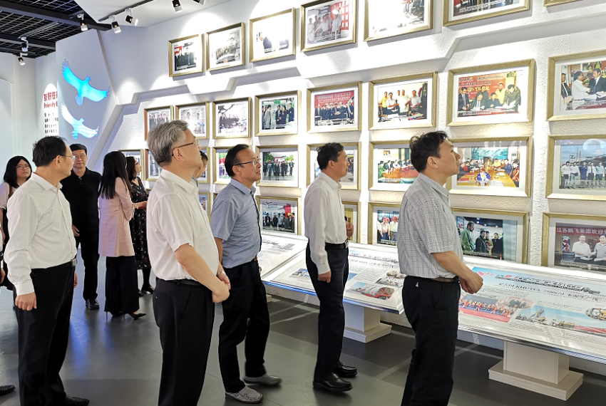 江蘇鵬飛集團股份有限公司董事長王家安帶領(lǐng)調(diào)研組一行,參觀了生產(chǎn)車間和展廳,向調(diào)研組介紹企業(yè)國內(nèi)外發(fā)展定位及在“一帶一路”沿線國家落地項目的概況,向調(diào)研組介紹企業(yè)現(xiàn)階段發(fā)展?fàn)顩r、海外項目運行情況及企業(yè)未來發(fā)展愿景。
